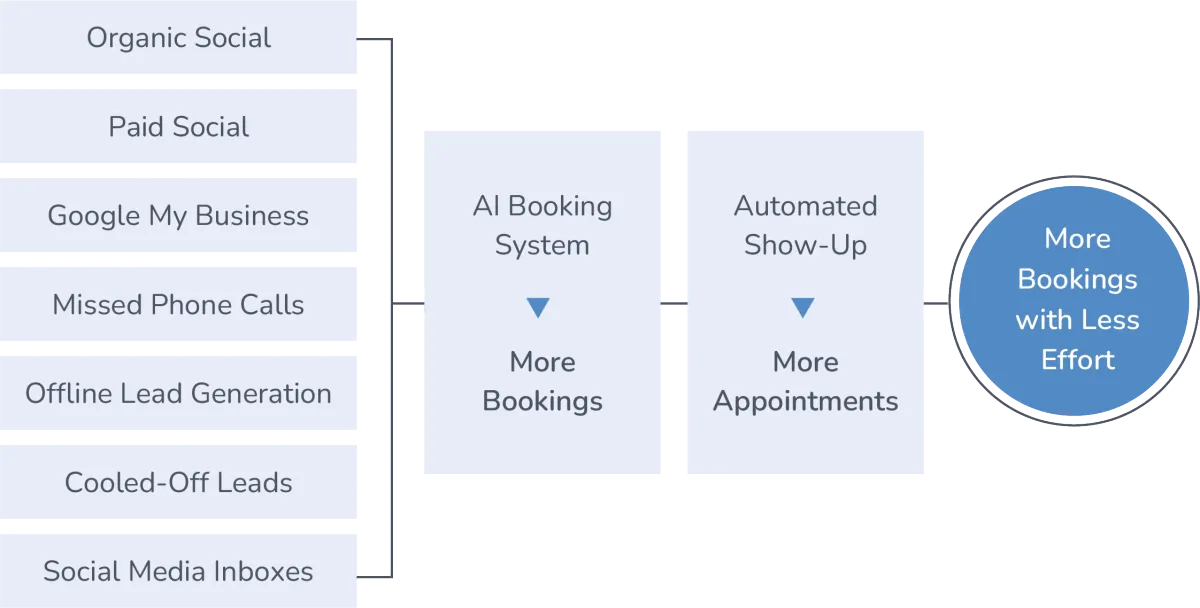 Growth plateaus as your team struggles to promptly engage leads as the business grows, often missing a vital step in the booking process.